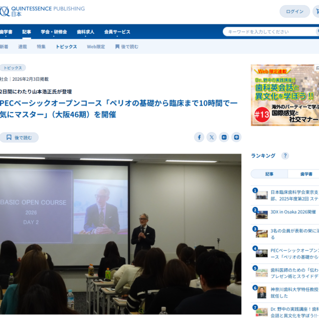 クインテッセンス出版のトピックでPECベーシックオープンコースが取り上げられまし…