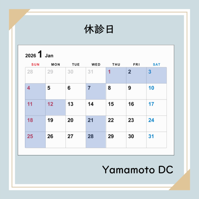 12月27日(土)の午後から1月4日(日)まで休診とさせていただきます。