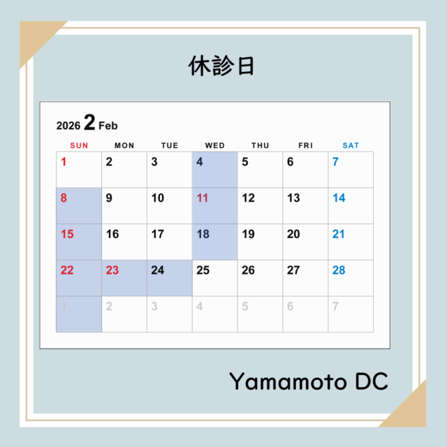 2月の休診日は日曜・祝日と2月4日、18日の水曜日です。